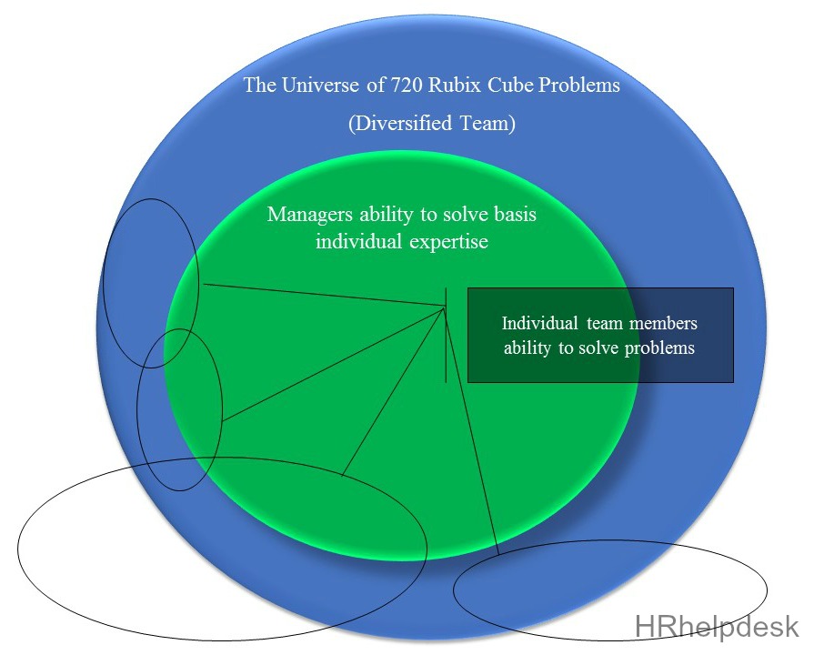 As you can see, the given diagrams explain a team which has Diversity and a team that doesn’t, these aptly explain the ability of the team which has Diversity to be much more agile and to manage the work environment with a higher success ratio than the other team.